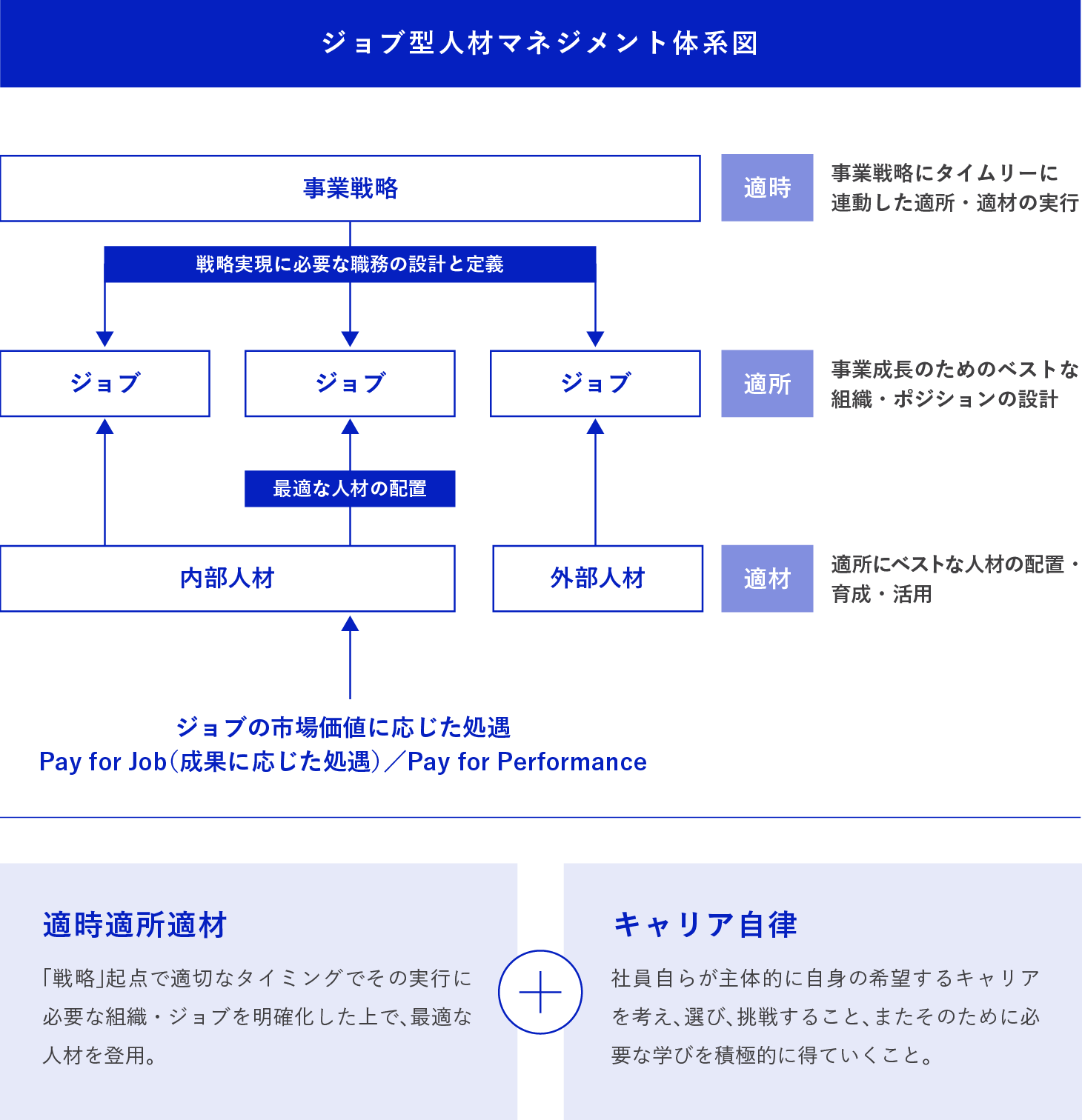 個人も企業も大きく成長をしていくためには、社員一人ひとりが力を最大限発揮できる環境であることが欠かせません。そのための仕組みとして、NECネクサソリューションズでは「適時適所適材」で「キャリア自律」を実現できる「ジョブ型人材マネジメント」を導入しています。